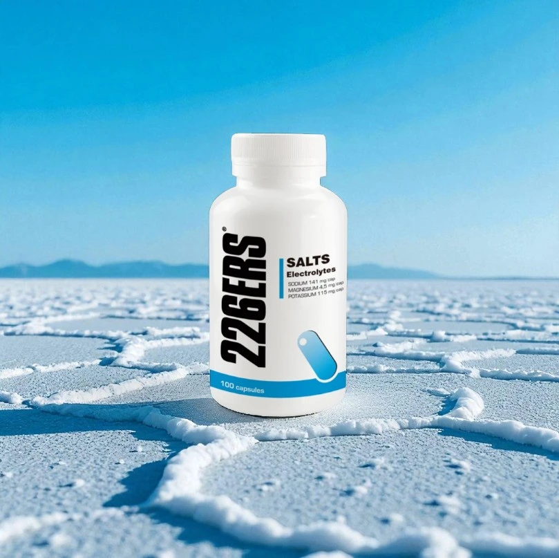 Salts Electrolytes de 226ERS es un suplemento en cápsulas diseñado para cubrir la pérdida de sales minerales durante el ejercicio físico, especialmente en condiciones de calor, alta humedad o sesiones de larga duración.